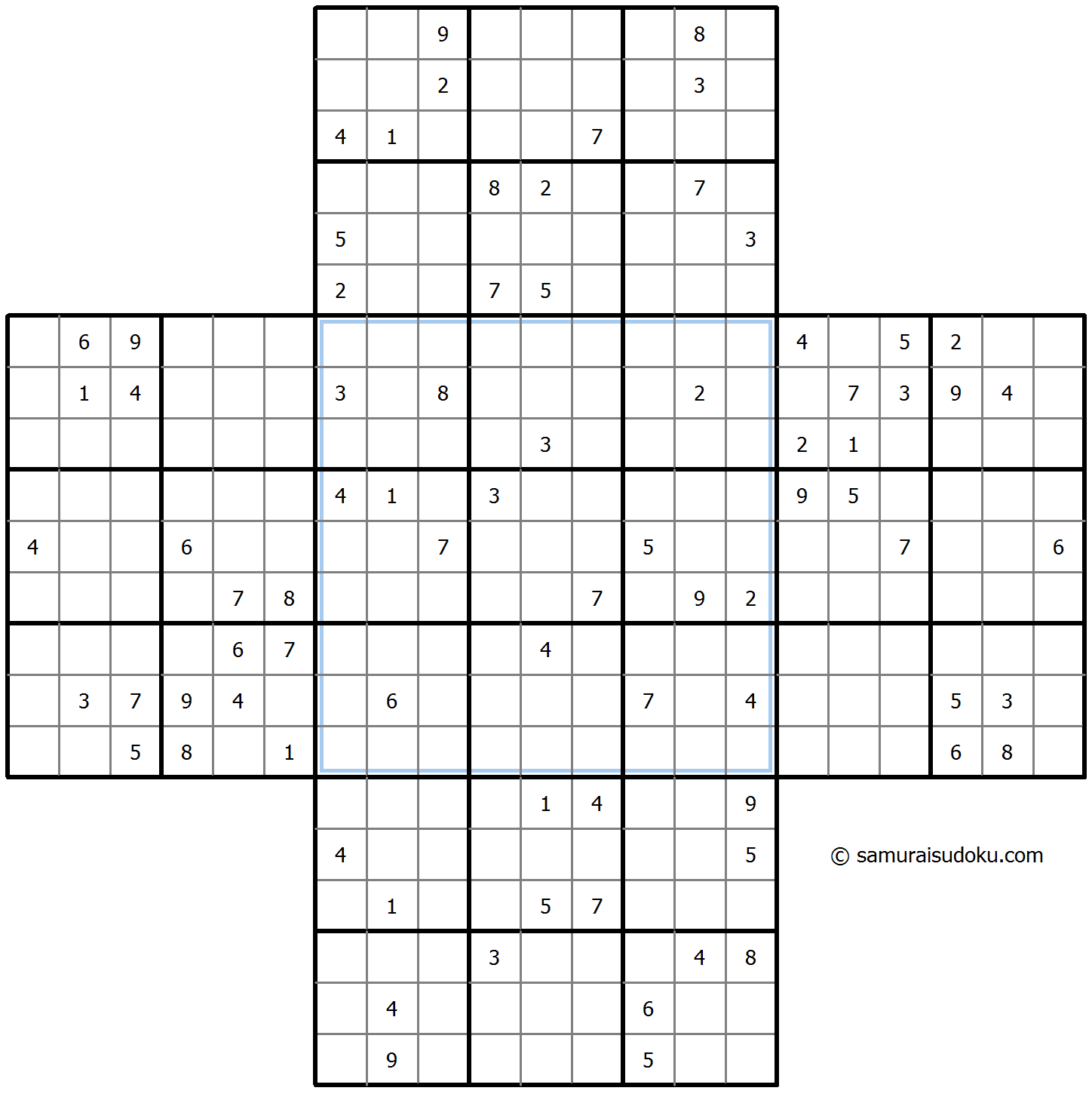• Cross Sudoku has five merged grids. The numbers must be placed correctly for all the five puzzle squares.